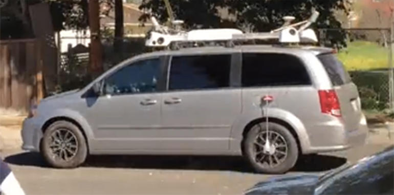 Above: An Apple car test mule disguised as a Chrysler Grand Voyager